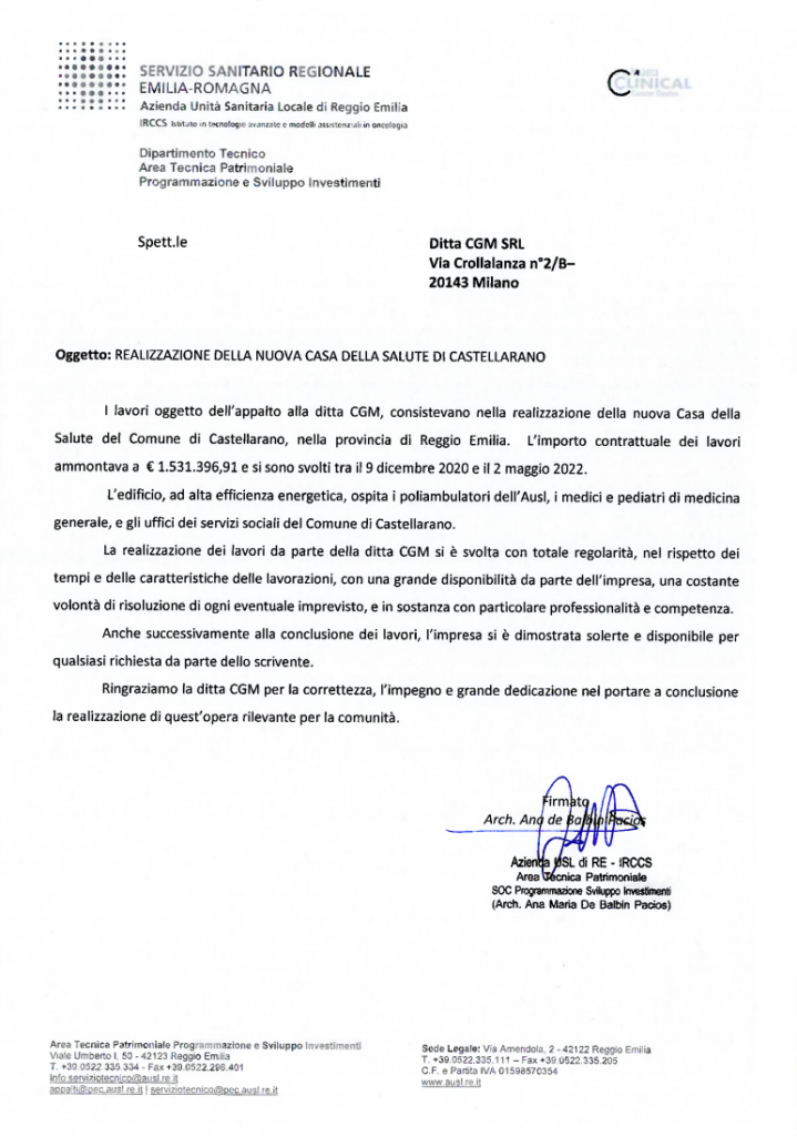 CGM srl si è aggiudicata l’appalto di realizzazione del nuovo edificio di proprietà AUSL a Castellarano (RE).