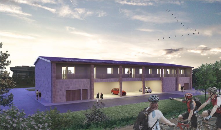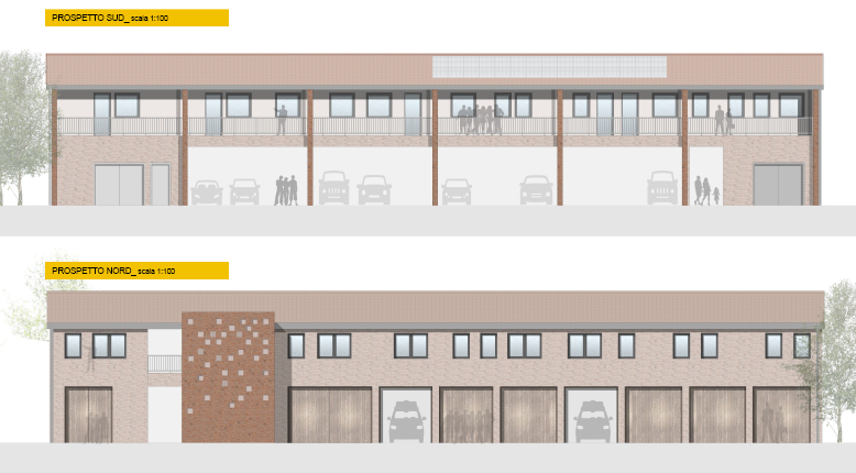 • mantenimento dell’area parcheggio esistente e creazione di un edificio inserito nel verde con particolare attenzione alla scelta delle piante autoctone piantumate.