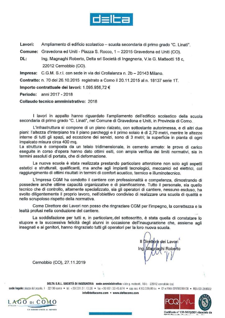 CGM srl si è aggiudicata l’appalto di progettazione integrata per la realizzazione dell’ampliamento dell’edificio scolastico della scuola secondaria di primo grado di Gravedona e Uniti.